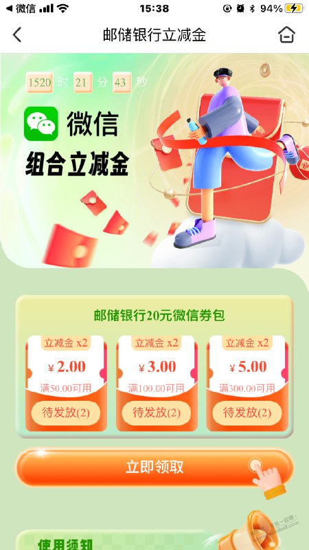 🚦 苏州银行→首页顶部如图→立即参与→工资理财体验礼,做个风险评估立即就可以抽奖了。做过风险评估的老哥直接设置一笔定投就可以抽奖了,记得终止定投,反正两者完成一个就可以抽奖了。活动规则大概率中0.88、1.88、8.88、立减金没有券,也不会到卡包,微信绑定苏州YHK,比如中0.88用苏州YHK支付1就抵扣了。1.88消费,刚拿