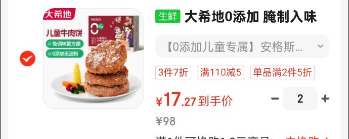 大希地 儿童安格斯纯牛肉饼汉堡饼小牛排 600g