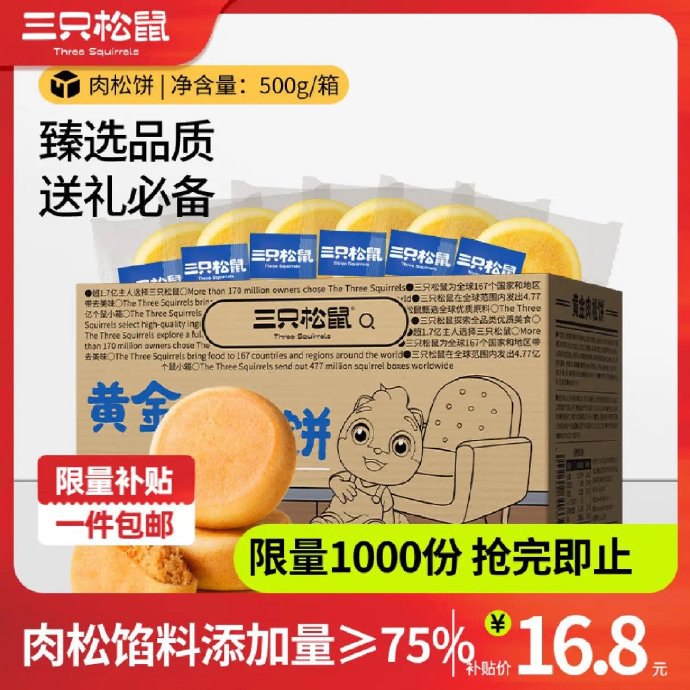 三只松鼠黄金肉松饼 500g×2箱