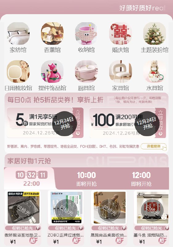 0点 页面可领家居馆5折券/200-100券
