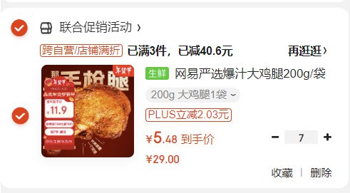 网易严选爆汁大鸡腿200g/袋五香味,买7件35.37