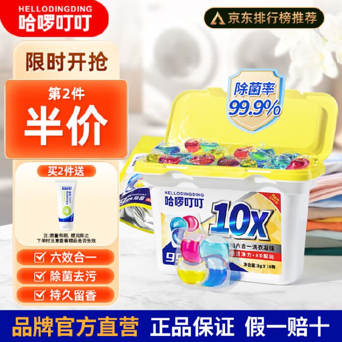 哈啰叮叮洗衣凝珠留香珠六合一18颗,首购2礼金,3.87