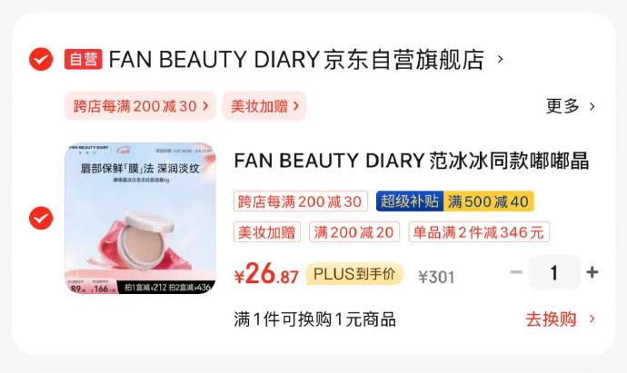 🚦 FAN BEAUTY DIARY嘟嘟晶冻日夜淡纹唇油膜4g,买1件 凑单折后26.87凑单两款