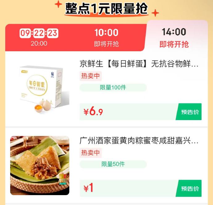🚦 14点 百亿补贴抢,鸡蛋6.9/粽子1/金纺1 美妆馆1元秒杀 家居会场1元秒杀,多款