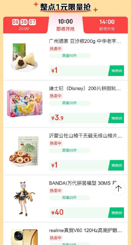 10点抢购 百亿补贴会场,粽子1/山楂干1等等