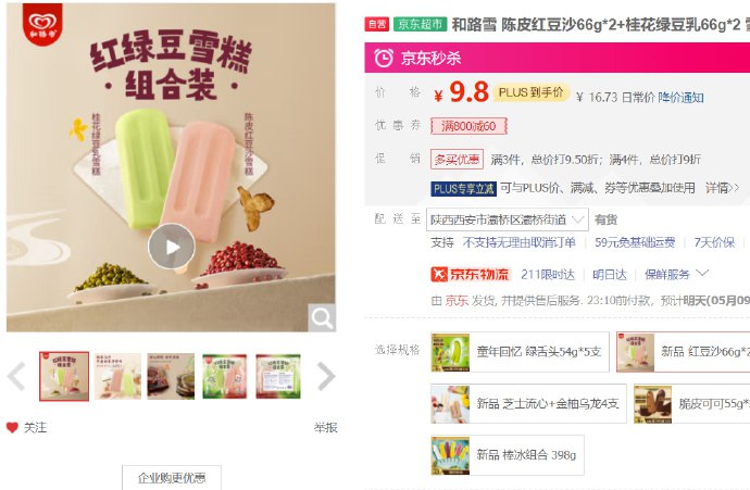 和路雪 陈皮红豆沙66g×2 桂花绿豆乳66g×2,店铺入会领7-3券,6.8