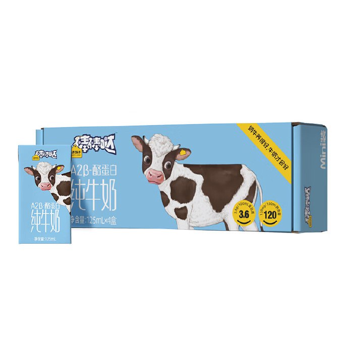 认养一头牛 棒棒哒A2β-酪蛋白纯牛奶125ml×4盒,加购1件不付