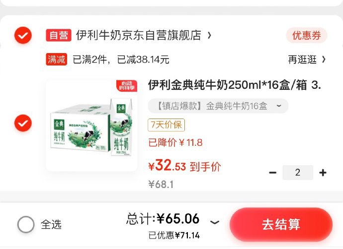 跳小程序拍2件68元 折34/箱
