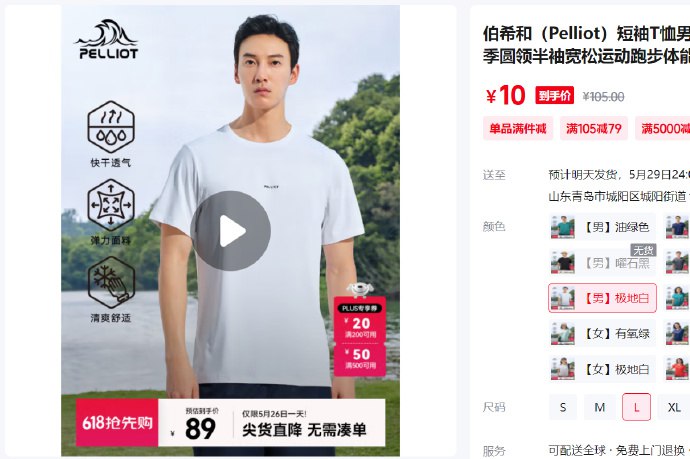 伯希和 男女士快干短袖T恤,10