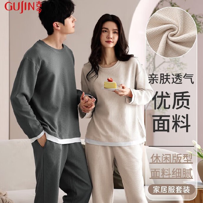 古今 (GUJIN)新品春夏纯棉华夫格情侣睡衣,24.14元