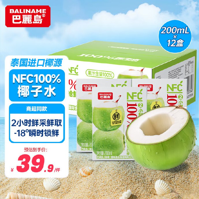 巴麗岛100%椰子水200ml×12盒,买3件 凑单折后13.6/件