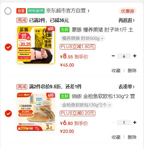 🚦 底部点“主会场”领取200-20券×3张蒙豚 慢养黑猪 肘子块1斤,4件俏侬 金枪鱼软欧包1