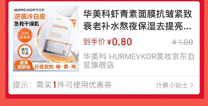 0.75元 华美科虾青素面膜