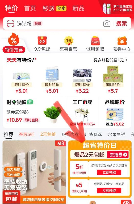 特价页面2元包邮日,领9-8券