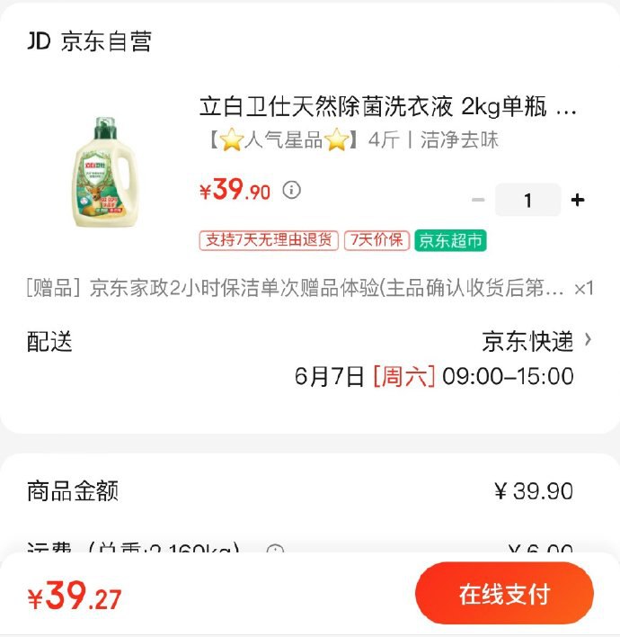 立白卫仕天然除菌洗衣液 2kg