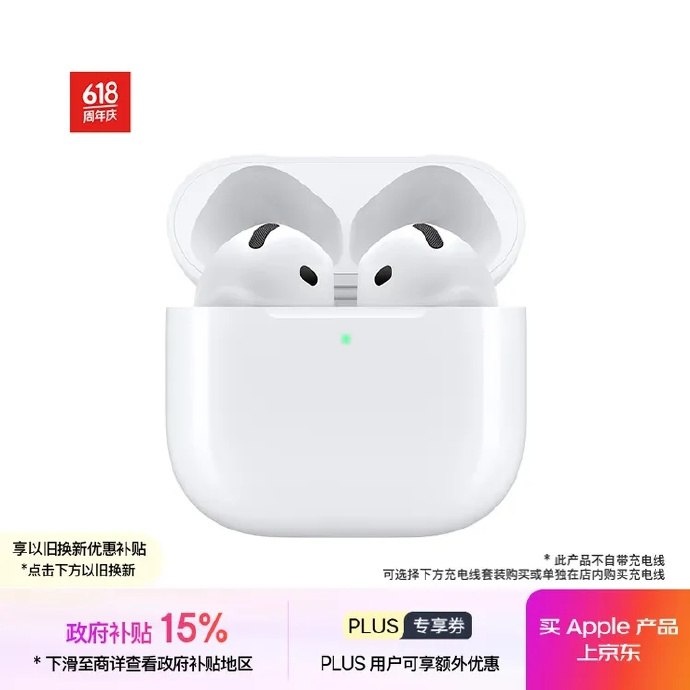 🚦 plus会员1000-100券 领取红包Apple/苹果 AirPods 4 搭配USB-C
