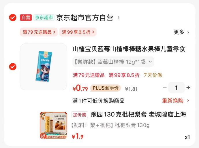 🚦 山楂宝贝蓝莓山楂棒尝鲜款,购物车可加入换购 豫园130克枇杷梨膏(1.9)换购商品 无货则不显