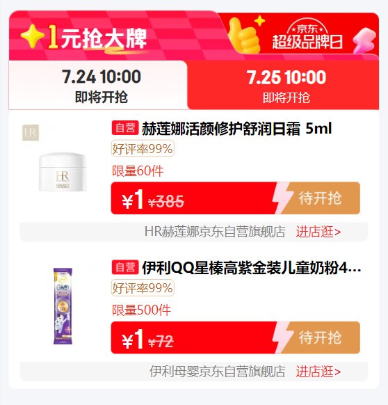 超级品牌日,1元秒杀
