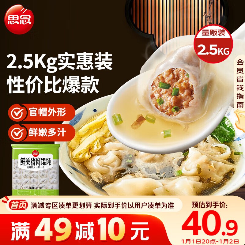 思念 鲜美猪肉馄饨2.5kg约277只