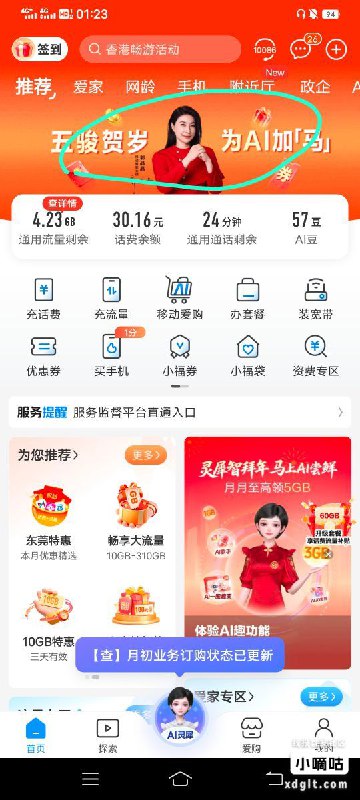 冲冲冲,移动首页全国活动抽最高100g流量,俺中20g