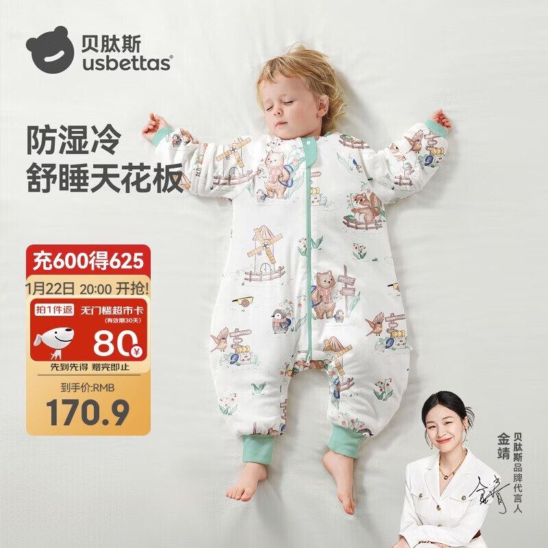 贝肽斯婴儿睡袋秋冬恒温儿童分腿睡袋 熊熊L,20首单,弹3立减,凑后96.06,返80卡