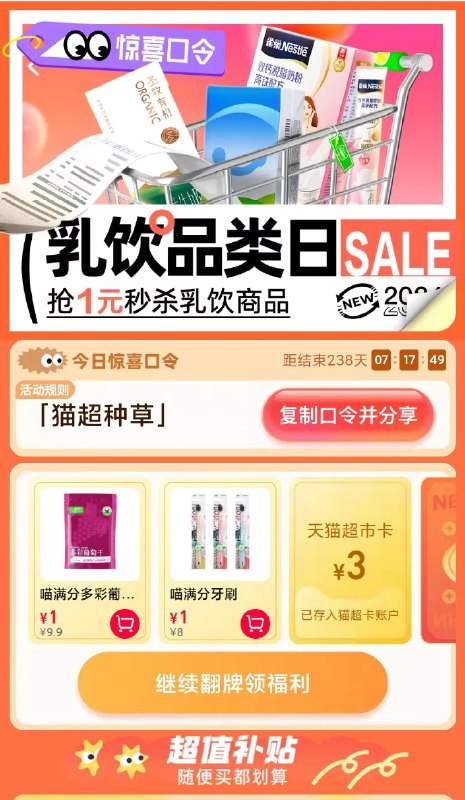 首页右下角,惊喜口令试试:猫超种草