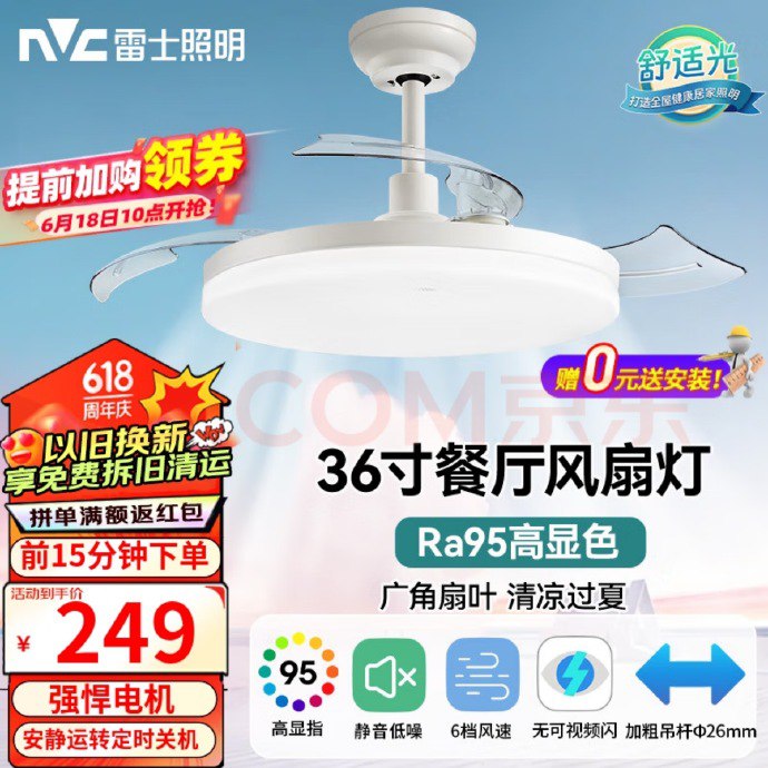 雷士 (NVC)风扇灯吊扇灯遥控变频定时36寸, plus到手160 ,以旧换新-20,到手140
