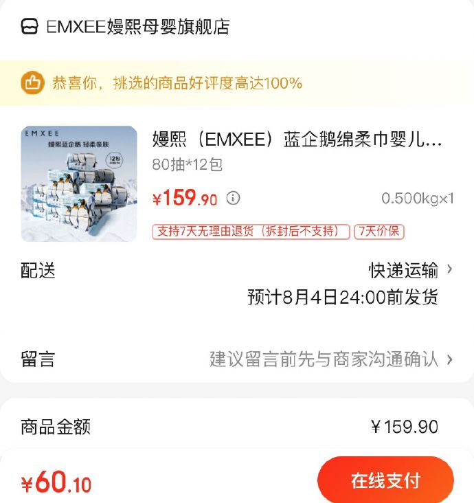 嫚熙蓝企鹅绵柔巾80抽×12包