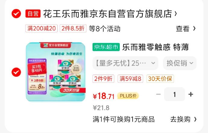 Laurier乐而雅零触感特薄特长日用护翼型卫生巾25cm16片砸部分号