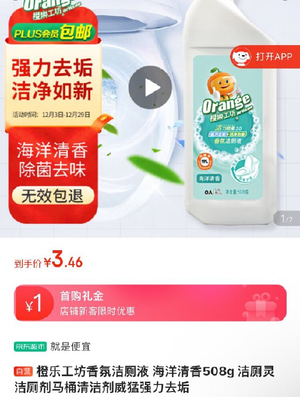 橙乐工坊香氛洁厕液508g叠1礼金plus拍下3.46