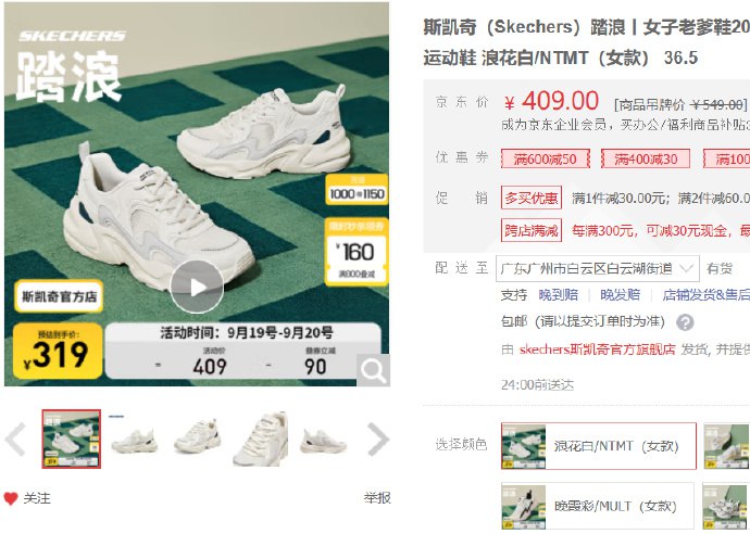 斯凯奇 踏浪 女子老爹鞋透气小白鞋,支付时抵扣券后166.96