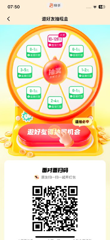 快手每日破0,点红包里面有这个现金大转盘,免费抽一次必中最低0.3,直接到微信,没入口的人扫码,有头,介意不用玩